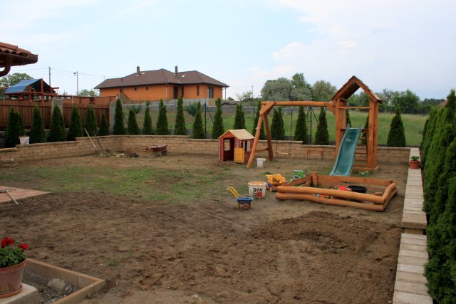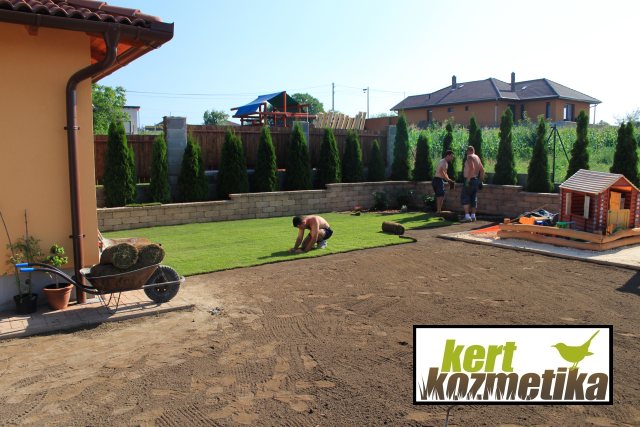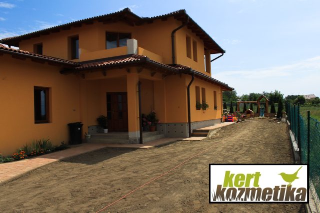 Szerencsére a termőtalaj jó minőségűnek bizonyult, így a füvesítéshez nem volt szükség külön talajjavításra.