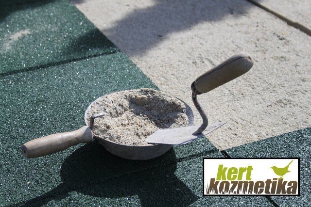 A betonozási munkák során a játszótér gumilapos burkolatához 15 m hosszan barna szegélyeket készítettünk, az íves ágyásszegélyekhez pedig Patio térkő elemeket használtunk fel összesen kb. 60 m hosszon. A szegélyeket a tulajdonosi kérés szerint úgy állítottuk be, hogy a szegély teteje a vágott fű magasságával egy szintben legyen.