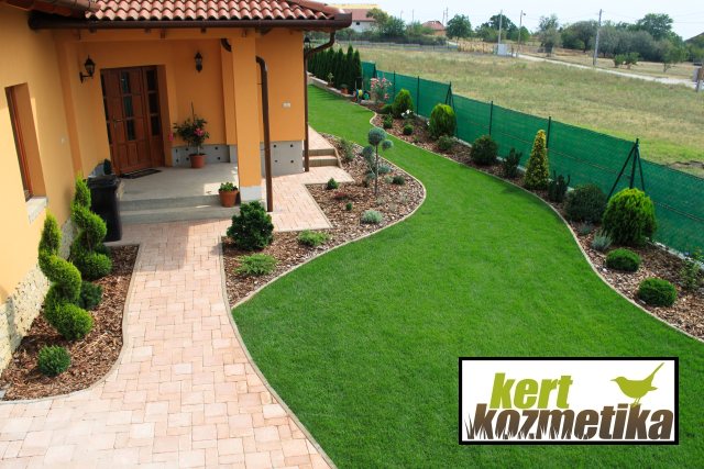 A végeredmény egy szép, örökzöldes kert lett, amely 16 nap alatt készült el. A kertben a füves „kifutó” sáv és az íves ágyáskapcsolatok egységes ritmust adnak, a játszótér pedig a mindennapi használathoz biztonságos és könnyen karbantartható felületet biztosít.