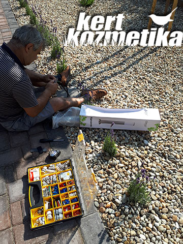 A kertben a korábban elkészített betontalpakra felszereltük a 16 db Hanovre állólámpát. A világítás célja az volt, hogy a burkolt közlekedők és a kert használati zónái sötétedés után is biztonságosan bejárhatók legyenek, miközben a kert esti hangulatát is erősíti. A lámpák vakításmentes fényt adjanak, miközben a kert hangulatvilágítása is kialakuljon. A bekötéseknél a későbbi karbantarthatóságot is figyelembe vettük, ezért a csatlakozások rendezett, hozzáférhető módon készültek.