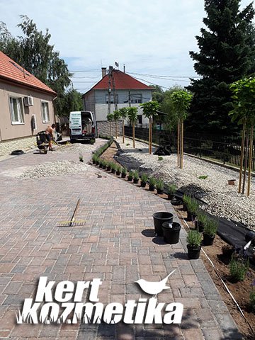 Gyömrő kertvárosi részein gyakori igény, hogy a nagy telkekből egy jól használható, „mindennapi” kertzóna készüljön: kényelmes közlekedéssel, tartós burkolatokkal, átlátható ágyás-szegélyekkel és olyan növényesítéssel, ami nyári terhelés mellett is kezelhető marad. A homokosabb talaj és a gyors kiszáradás miatt a vízmegtartás és az öntözés összehangolása sokszor kulcskérdés.